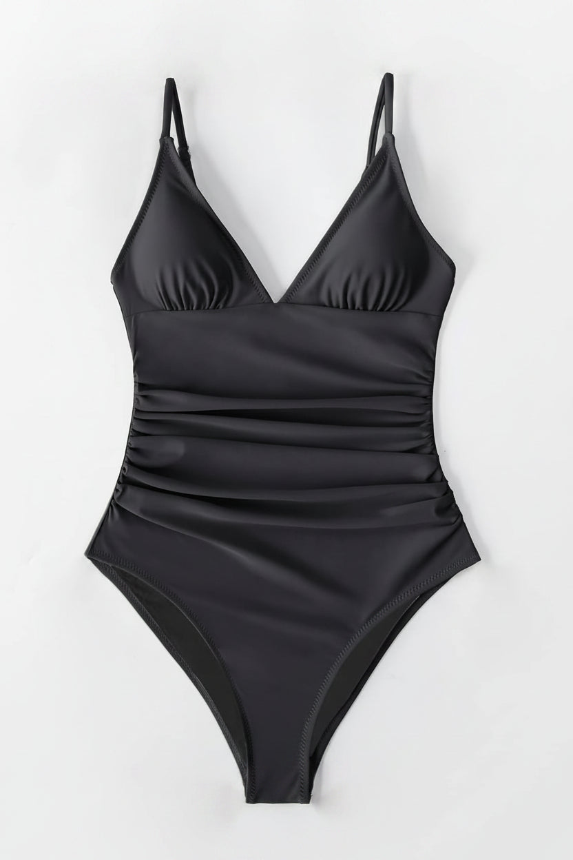El elegante escote en V realza el escote sin resultar llamativo. El delicado fruncido en la zona abdominal alisa visualmente y hace que el vientre parezca más plano, sin oprimir ni apretar. Los tirantes ajustables permiten adaptarlo a tu cuerpo y garantizan una sujeción cómoda.