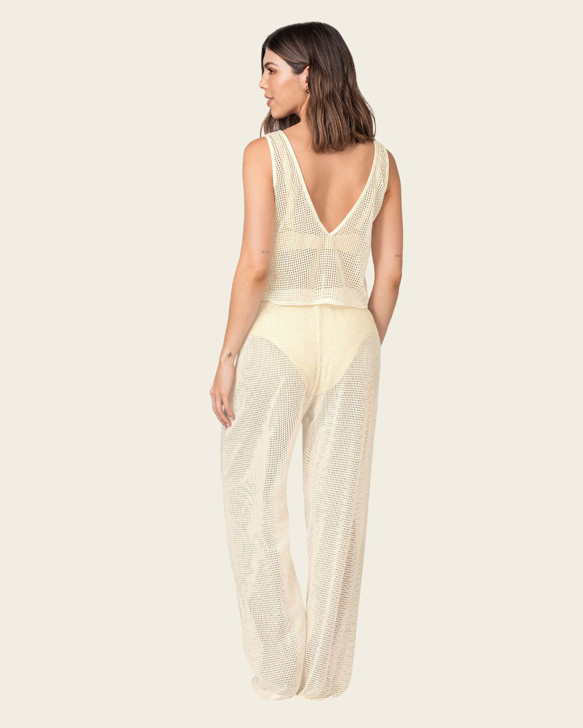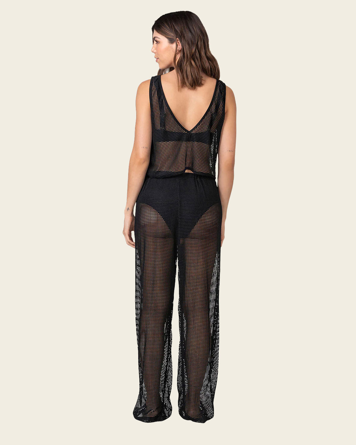 Un set para verte increíble en tus días de sol. Son dos piezas: una camiseta de silueta amplia y corta, y un pantalón con elástico en cintura. Ambos están elaborados en malla, lo cual permite la circulación del aire, haciendo que te sientas muy fresca ¡sabemos que no pueden faltar los complementos para tu look de playa y qué mejor que estén llenos de estilo.